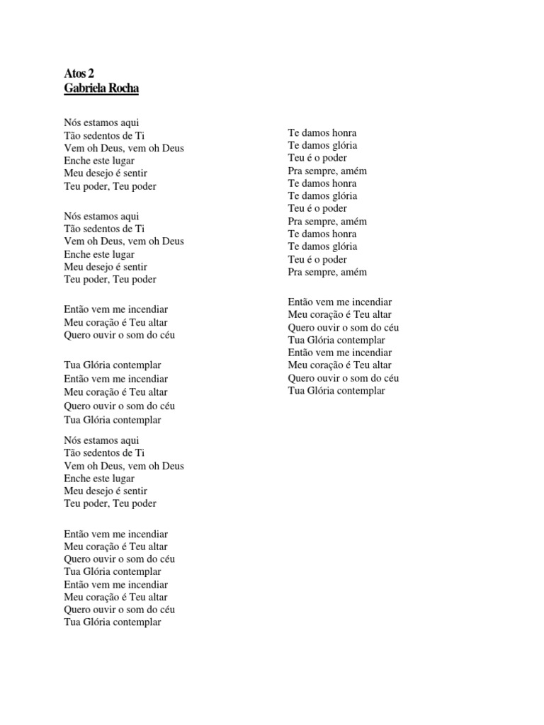 Atos 2 Gabriela Rocha Instrumentos De Corda Lazer from imgv2-1-f.scribdassets.com 0 avaliações0% consideraram este documento útil (0 voto). How to play atos 2. Até transbordar (ao vivo), 2016. Vem, ó, deus enche este lugar meu desejo é sentir teu poder, teu poder! Listen to atos 2 by gabriela rocha, 22,798 shazams, featuring on gabriela rocha: , goalkeeper at jogador de futebol. And in this application you can find the lyrics too from. Aplicativos disponível no google play baixar na app store baixar na microsoft.